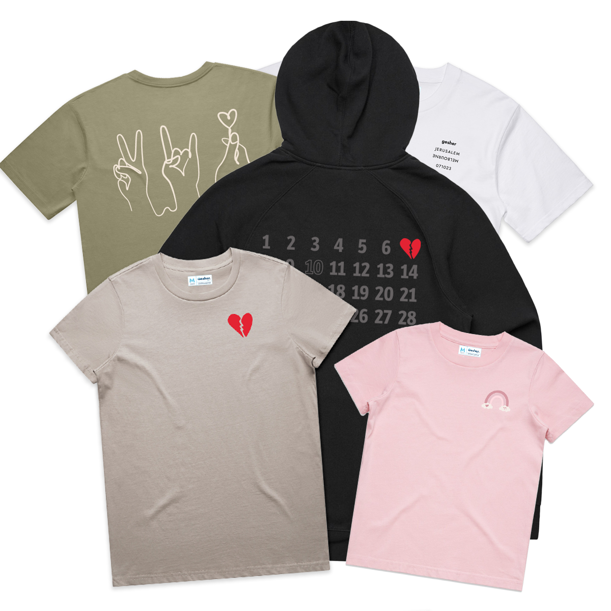 Gesher is excited to bring you a fashion collection where meaning, memory, and connection come together. Each item in our collection carries a story. From symbols of resilience to playful expressions of hope, every design honours the spirit, strength, and unity of the People of Israel.